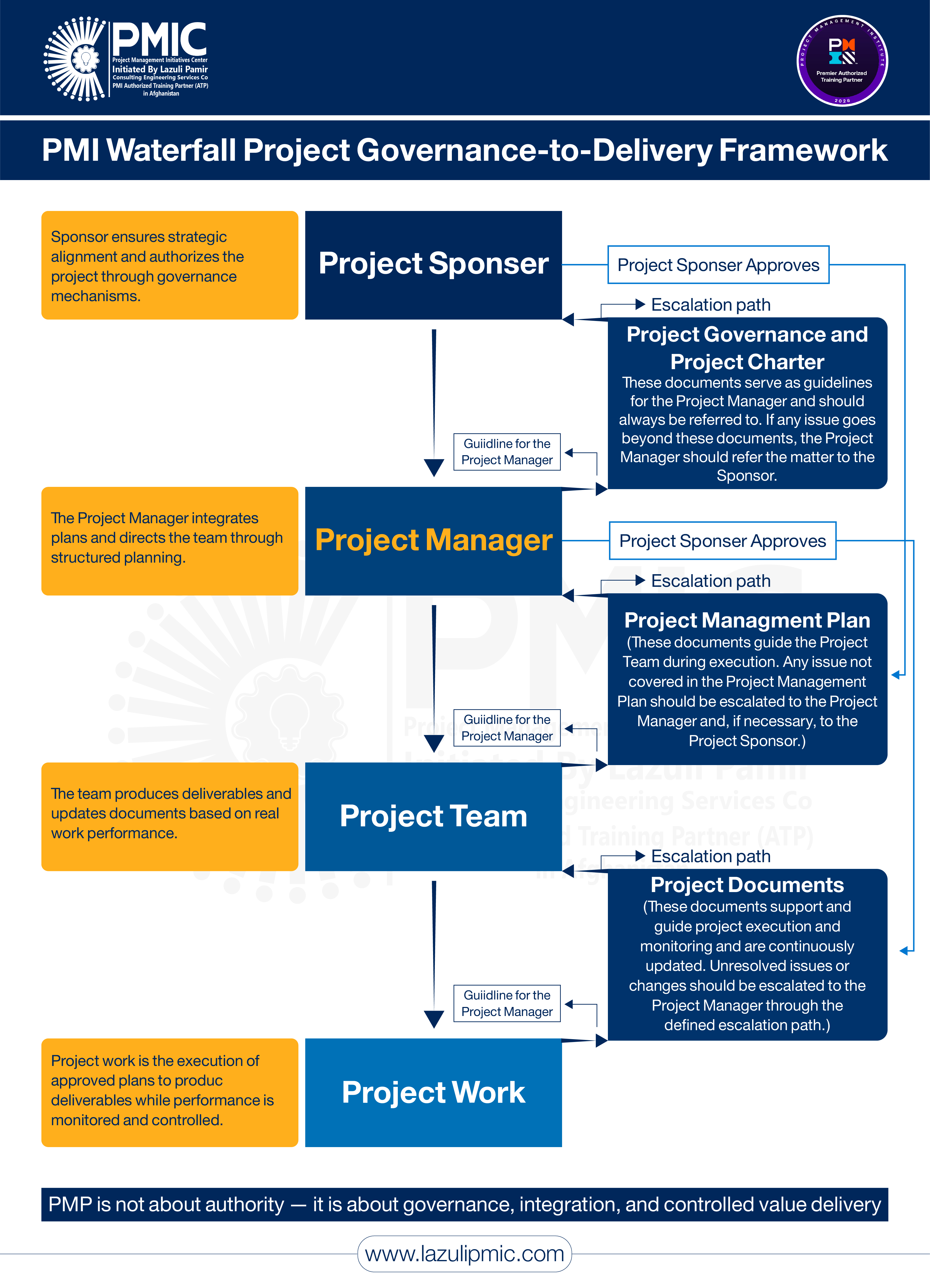 PMI Waterfall Project Governance-to-Delivery Framework | PMP® Concept Infographic by PMIC